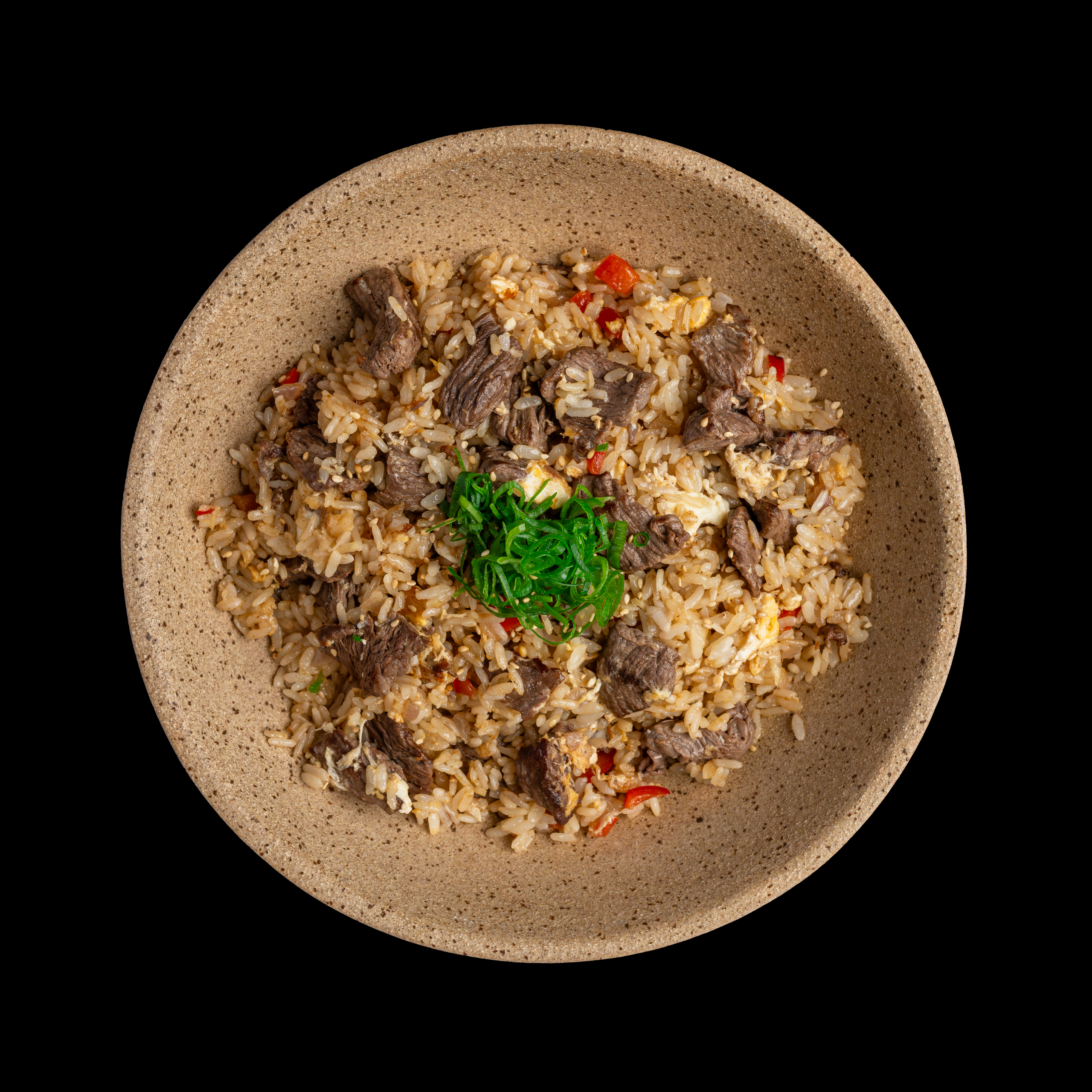 Ingrediente: Supă de pui, tăiței ramen, mușchiuleț de vită marinat, ou marinat, ceapă verde, muguri de bambus, ulei picant (la alegere)