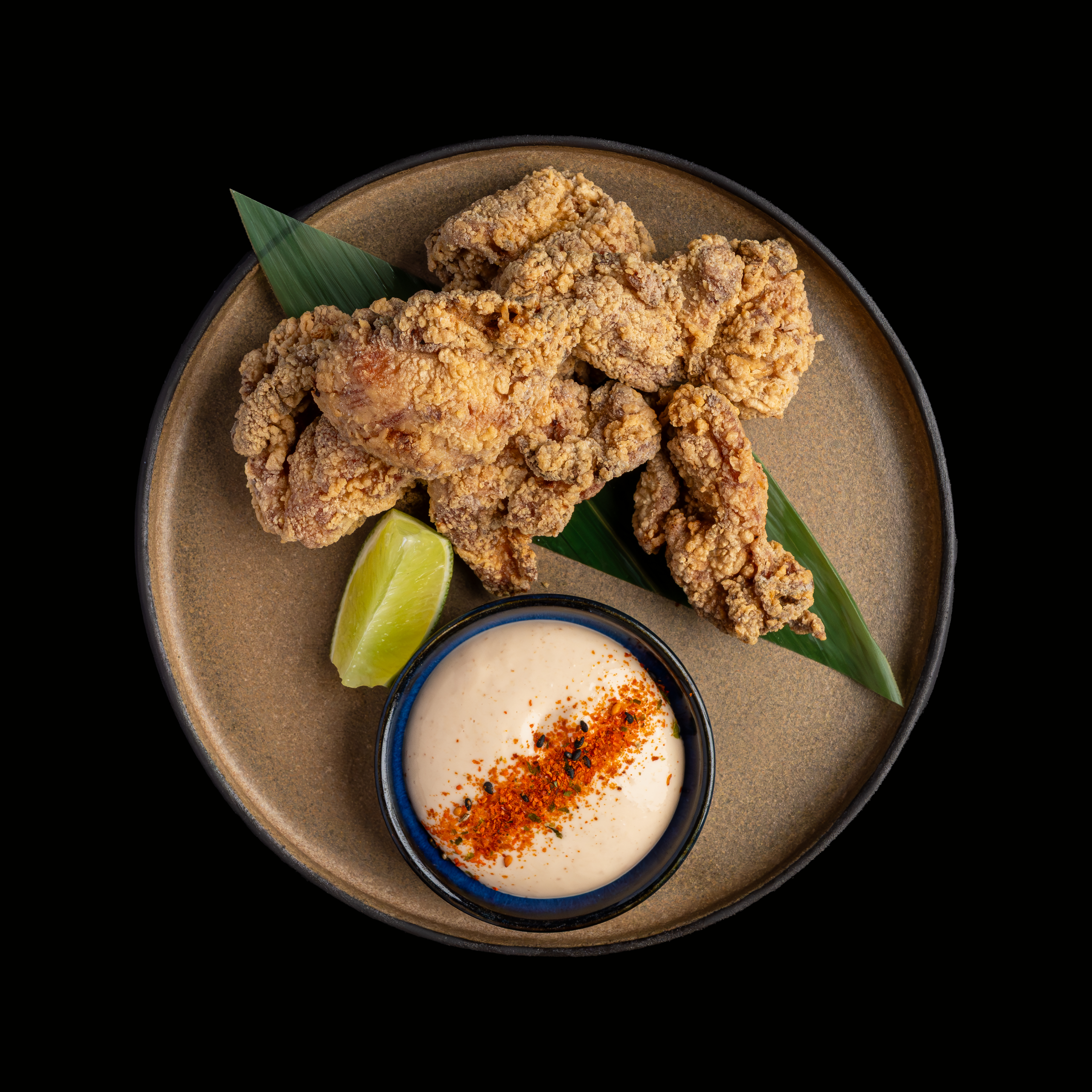 Ingrediente: pui prăjit in stil japonez, maioneză picantă, lime, togarashi