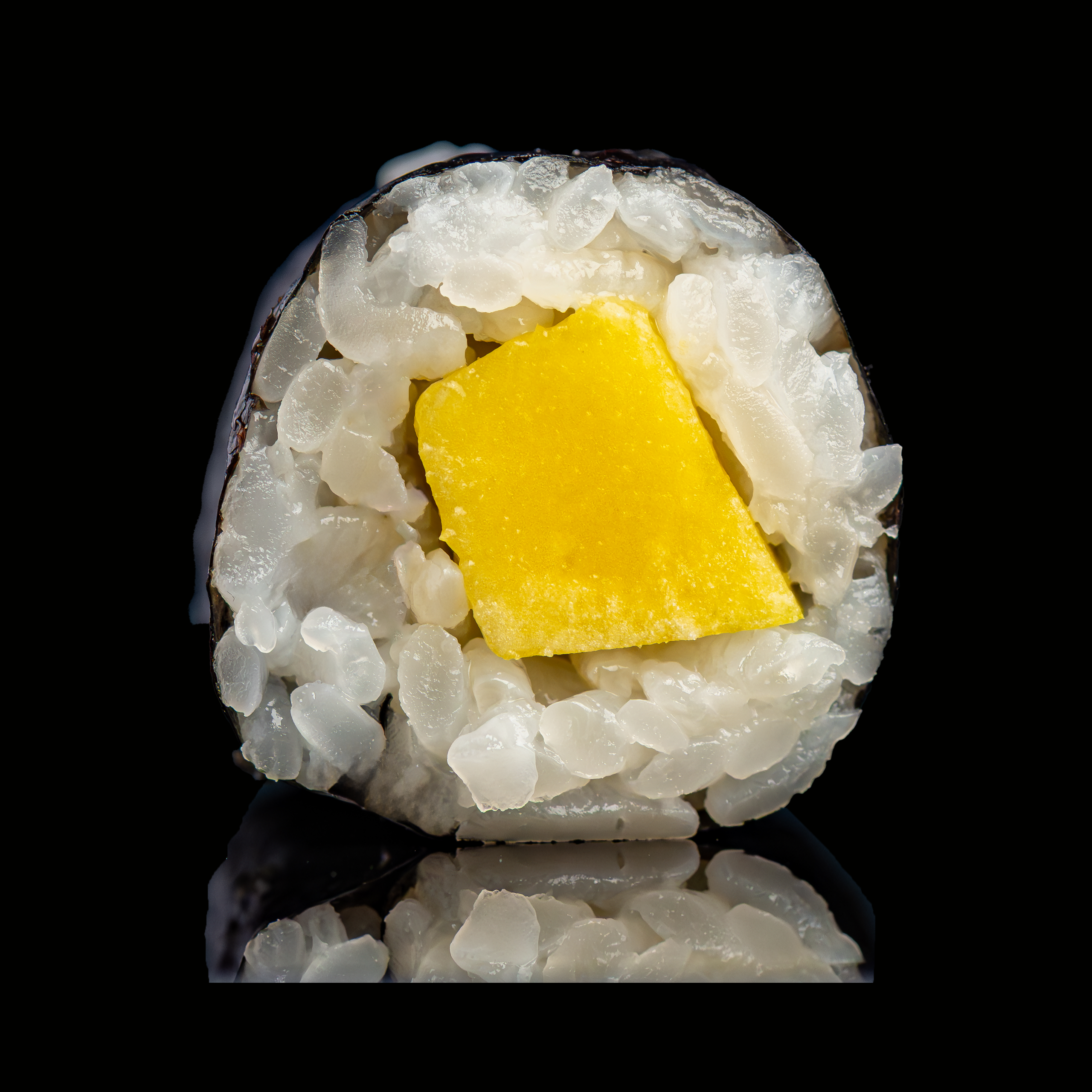 Ingrediente: orez sushi, avocado, mango, castraveți, roșii cherry, ceapă verde, susan.